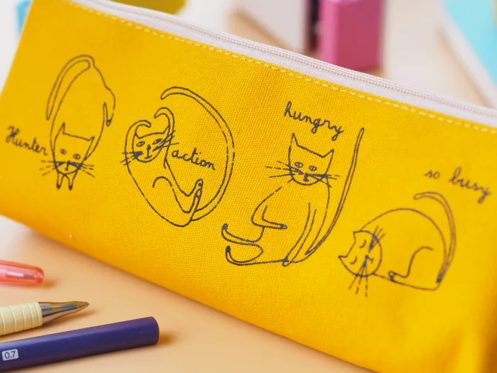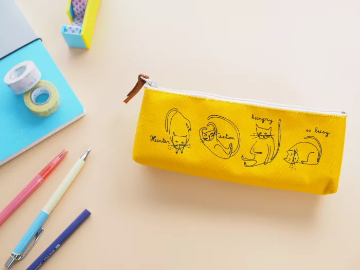 【orange airlines】帆布筆袋_慵懶貓咪(黃)